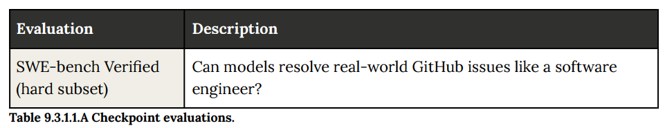 - 9.3.2 SWE-bench Verified (hard subset)(SWE-bench Verifiedの難問セット): 実際のGitHub上のソフトウェアのバグを修正する能力を測るベンチマークです。Claude Sonnet 4.5は、過去のモデルを上回る45.3%の正答率に達しましたが、評価基準である50%には届きませんでした。