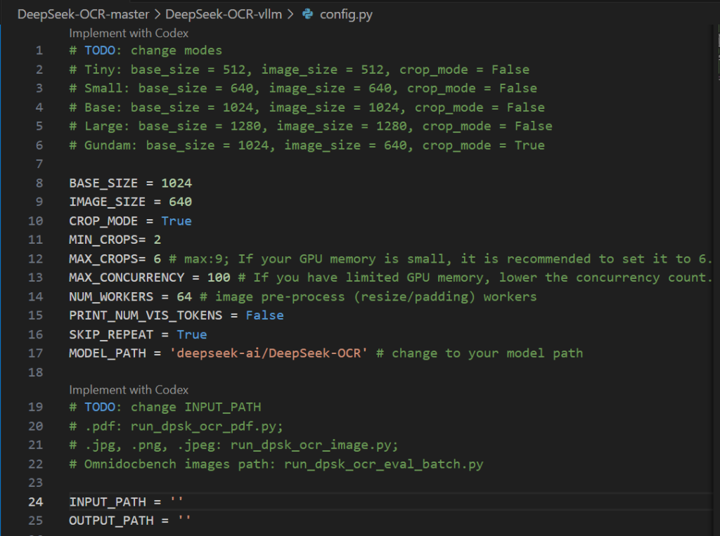 DeepSeek-OCR-master/DeepSeek-OCR-vllm/config.py の INPUT_PATH / OUTPUT_PATH などを書き換えてから実行します。