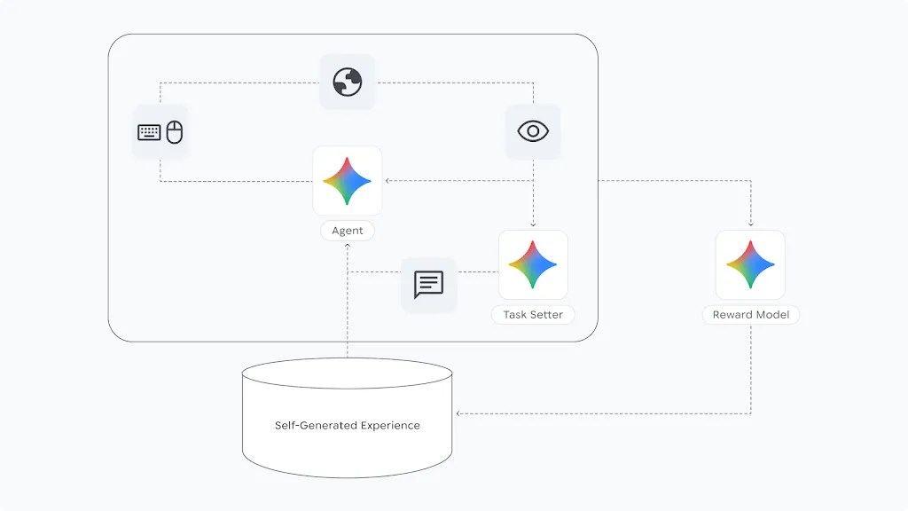 SIMA 2の最も興味深い新機能の一つは、自己改善能力です。Google DeepMindによれば、訓練の過程で、SIMA 2エージェントは試行錯誤とGeminiベースのフィードバックによってブートストラップされ、ますます複雑な新しいタスクを実行できるようになります。