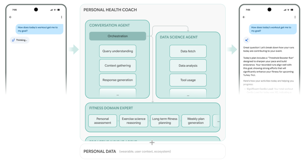 Google Researchによれば、このヘルスコーチの技術的基盤には複数の革新が組み込まれています。