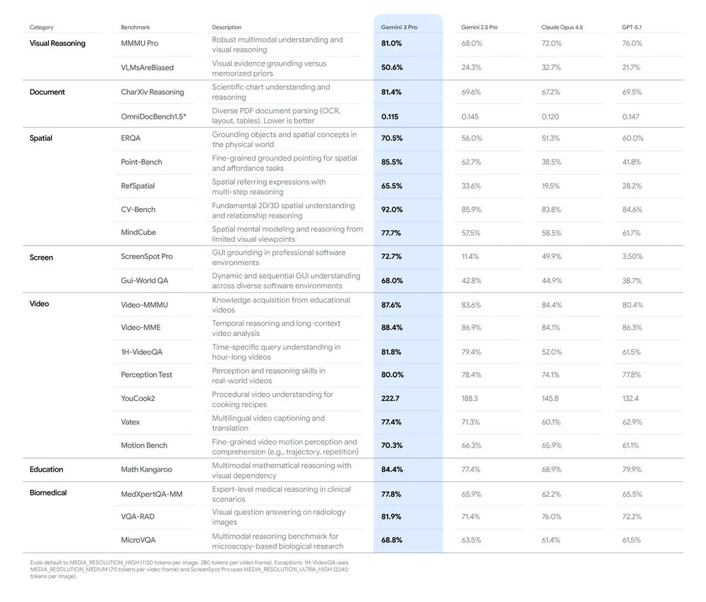 - Gemini 3 Proは単純な認識から真の視覚・空間推論への世代的飛躍を実現し、文書・空間・画面・動画理解で最高水準の性能を達成した
