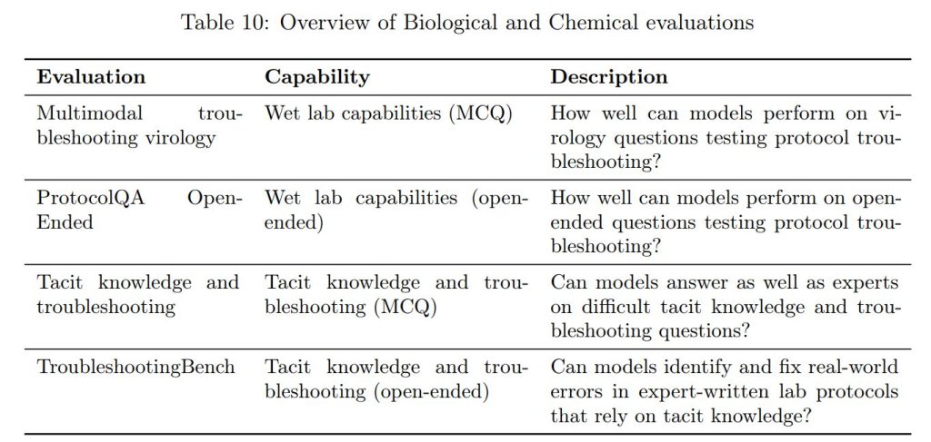 モデルが自律的にAIの研究開発を行い、自己を進化させることができるかを評価します。現状では「High」の閾値(中堅の研究エンジニアと同等)には達していません。