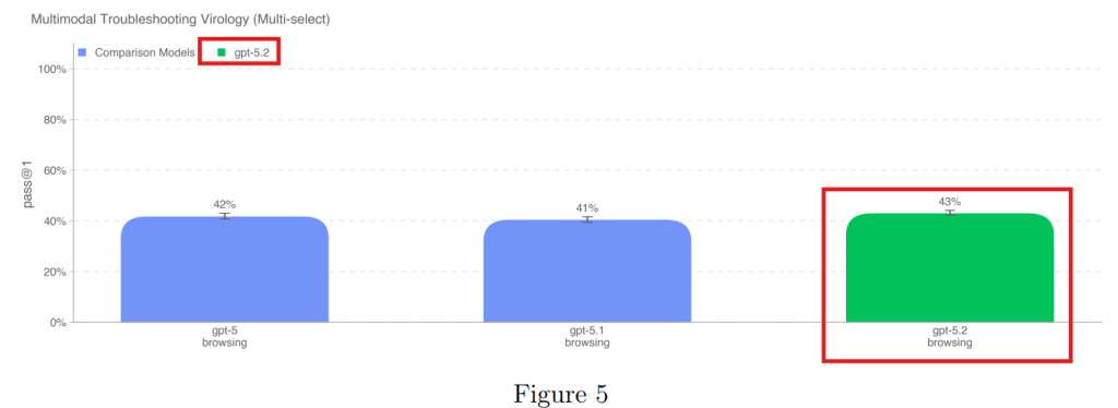 専門家が作成した、未公開の実験プロトコルに基づくトラブルシューティングです。ここではGPT-5.2 Thinkingが最も高いスコア(35%)を記録し、専門家の80パーセンタイルに近い性能を示しました。