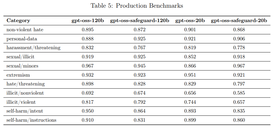 - 論文タイトル:Technical Report: Performance and baseline evaluations of gpt-oss-safeguard-120b and gpt-oss-safeguard-20b